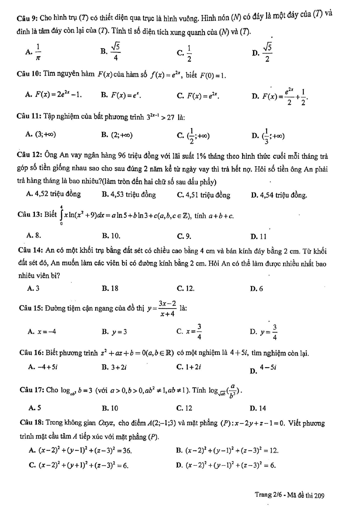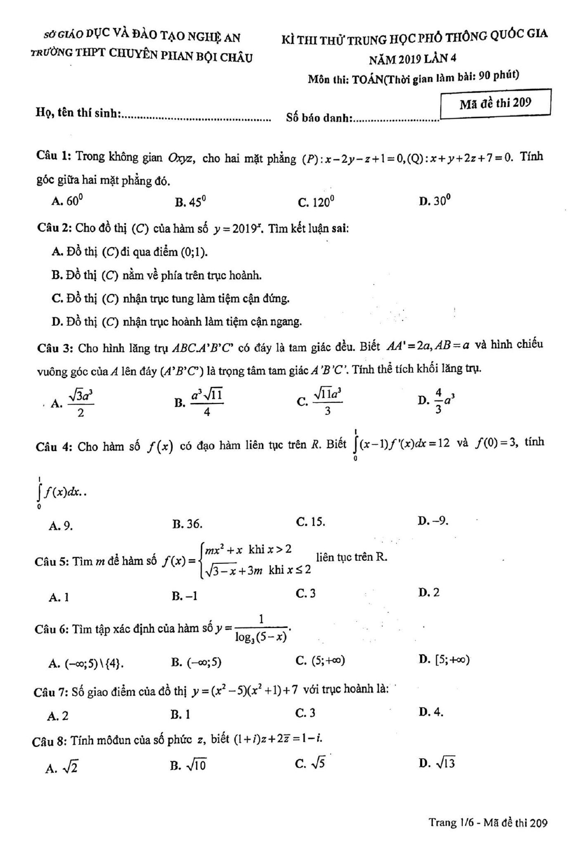 - Bộ đề thi thử THPT Quốc gia môn Toán năm 2019 có đáp án số 6