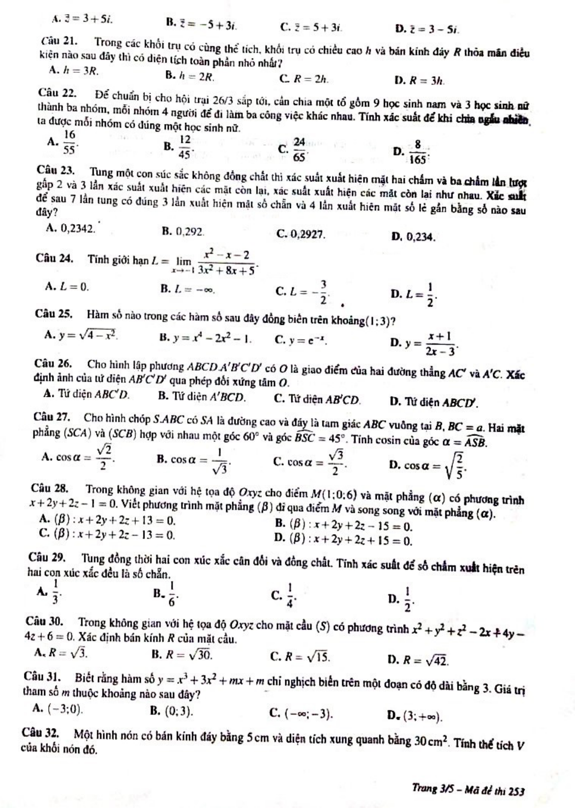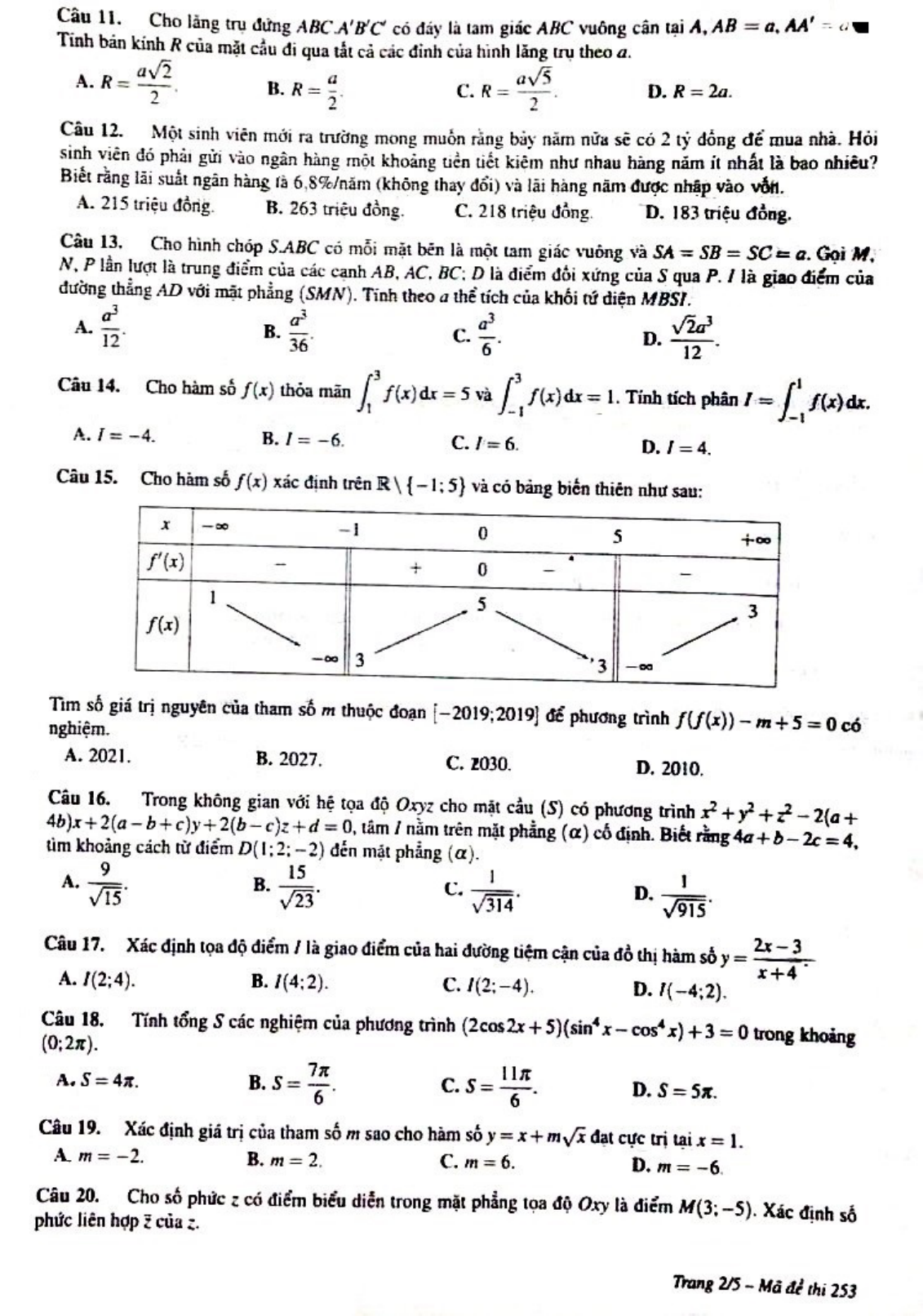 Đề thi thử Toán THPT Quốc gia 2019