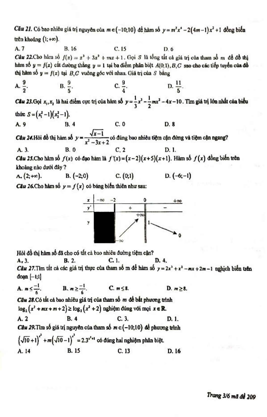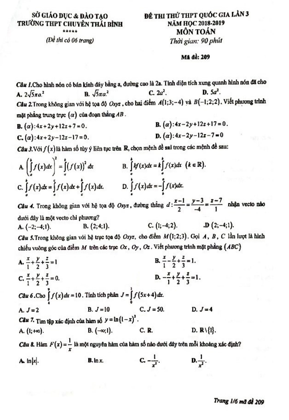 Đề thi thử THPT Quốc gia môn Toán năm 2019 trường THPT Chuyên Thái Bình lần 3