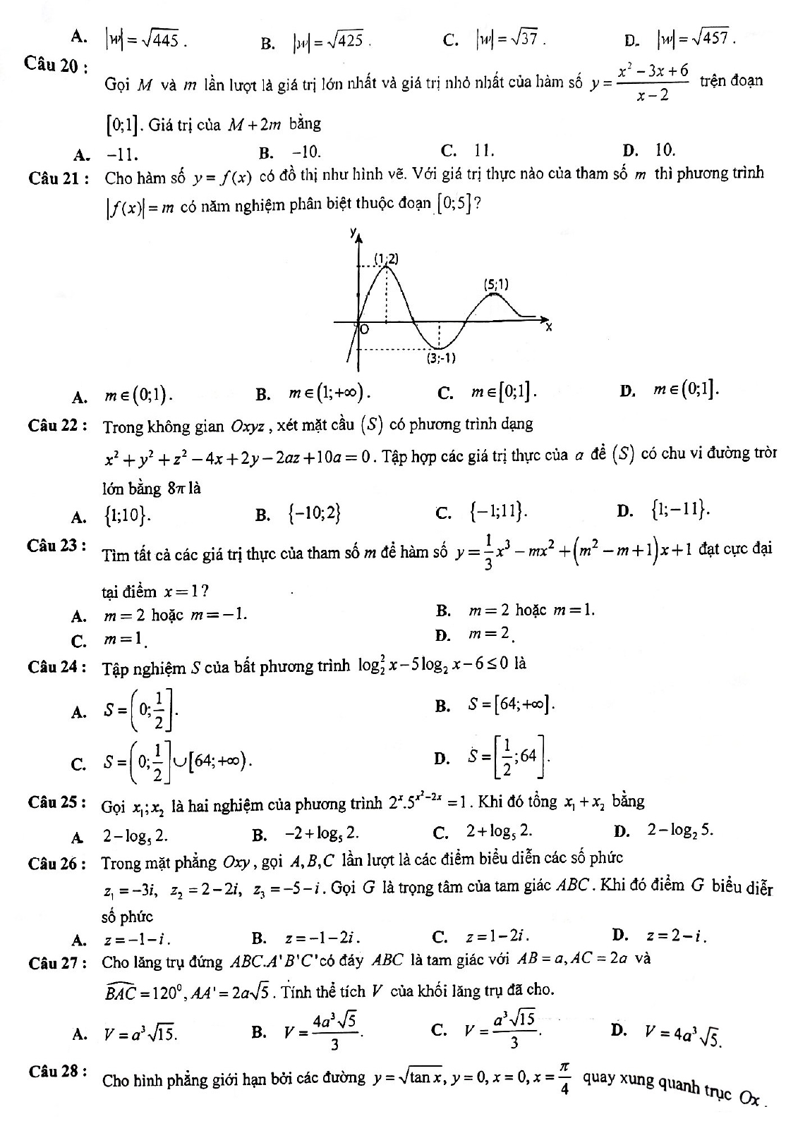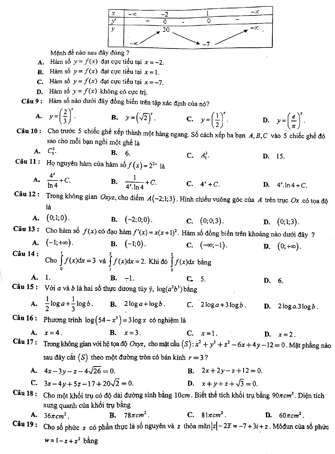 - Đề thi thử THPT Quốc gia môn Toán năm 2019 trường THPT Nguyễn Viết Xuân - Vĩnh Phúc lần 3