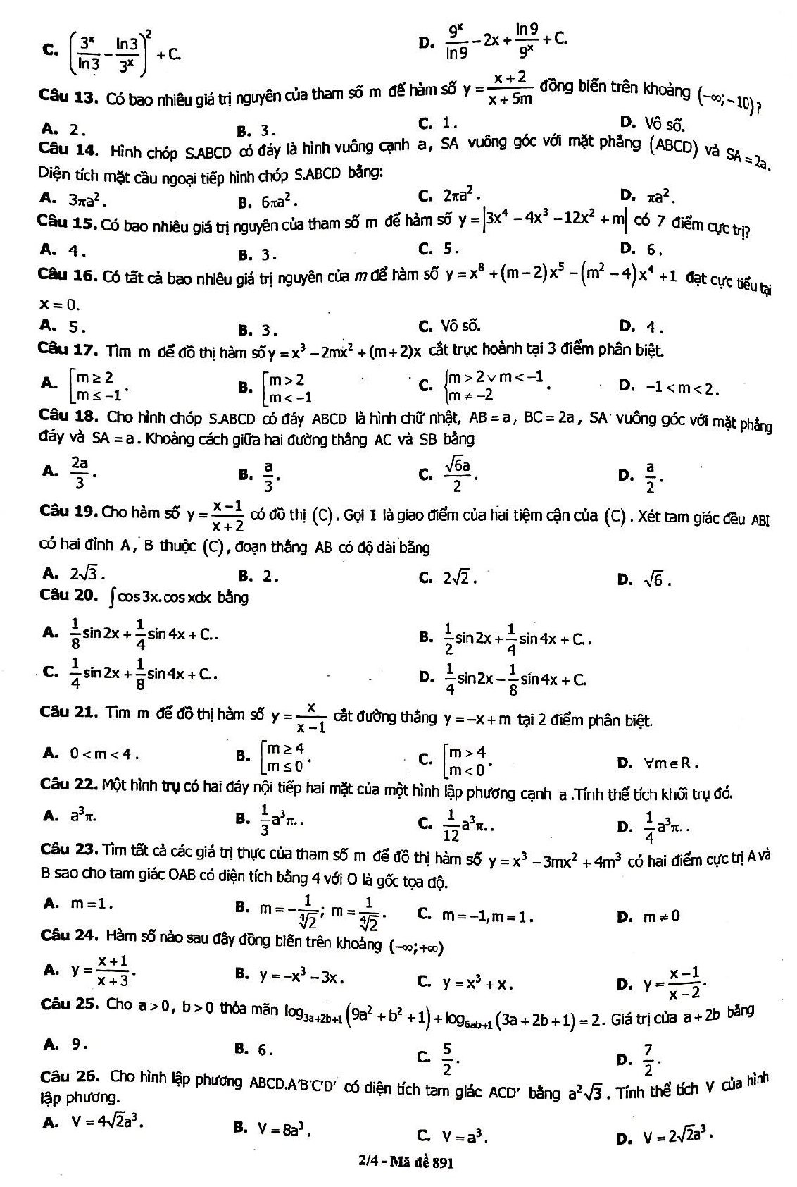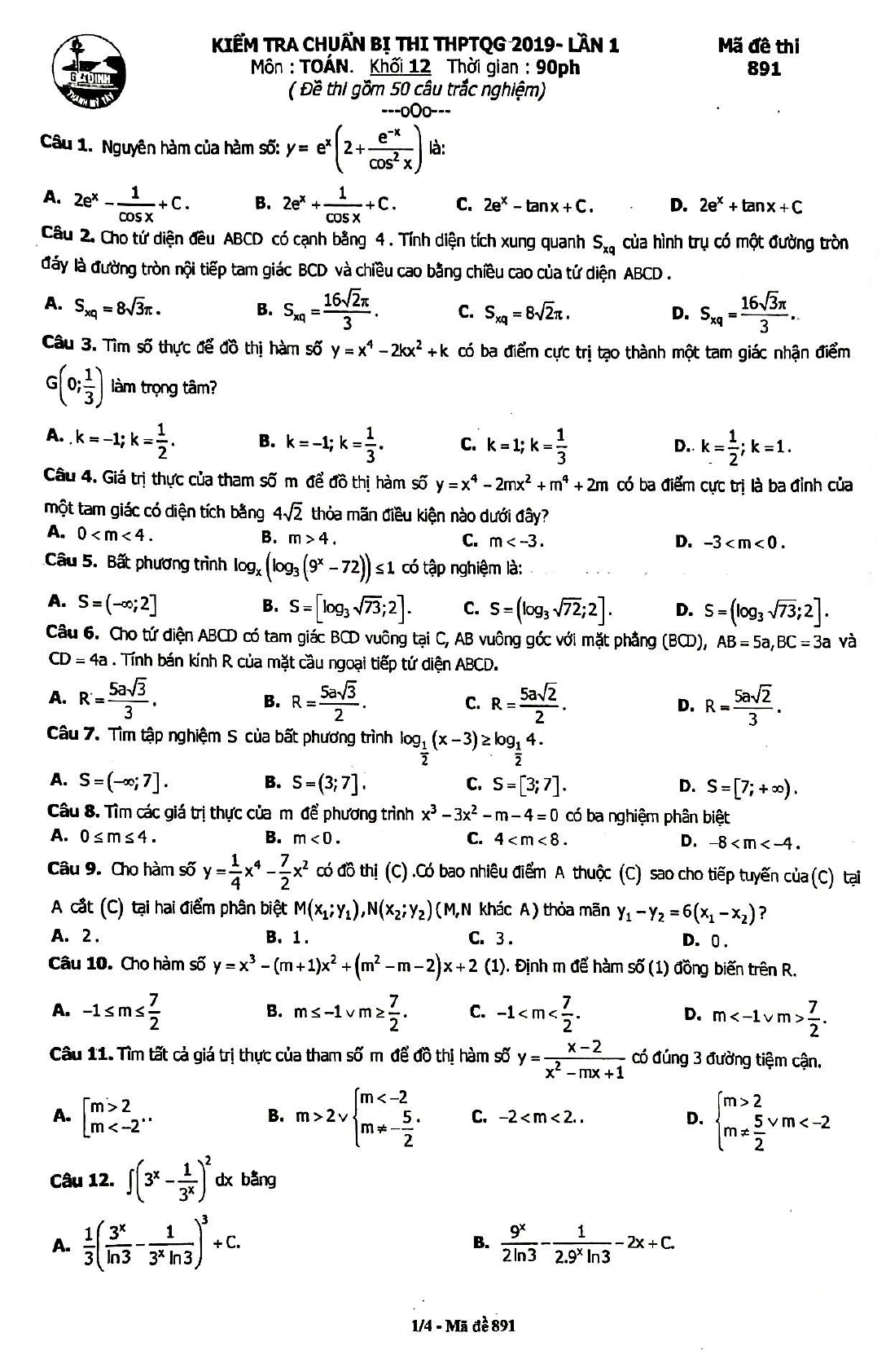 - Đề thi thử THPT Quốc gia môn Toán năm 2019 trường THPT Yên Dũng 2 - Bắc Giang lần 2