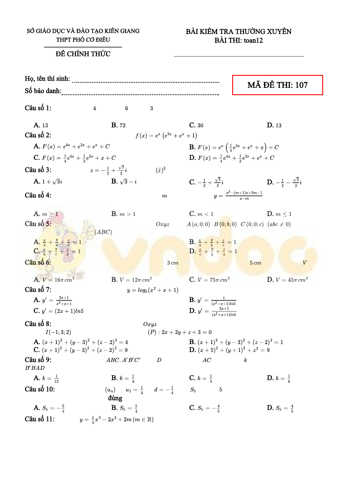 Trên đây VnDoc.com vừa giới thiệu tới các bạn Đề thi thử THPT Quốc gia môn Toán năm 2020 lần 1 trường THPT Phó Cơ Điều, Kiên Giang mong rằng qua bài viết này các bạn có thể học tập tốt hơn môn Toán lớp 12. Mời các bạn cùng tham khảo thêm các môn Ngữ văn 12, tiếng Anh 12, đề thi học kì 1 lớp 12, đề thi học kì 2 lớp 12...