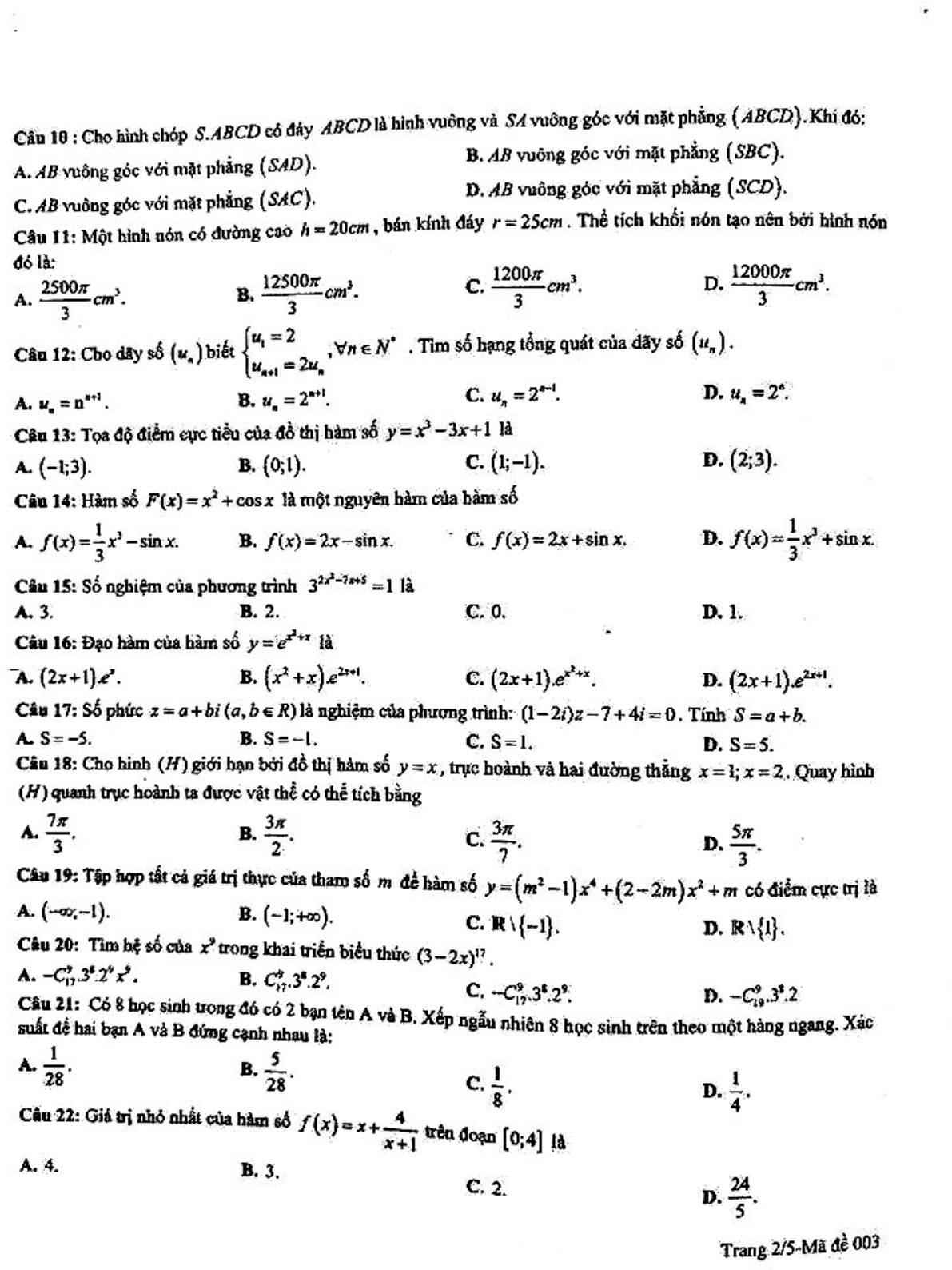 Đề thi thử THPT quốc gia môn Toán năm học 2017 - 2018 trường THPT chuyên Thái Bình (Lần 5)