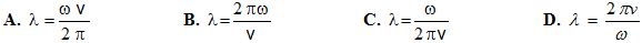 Câu 16: Một dao động hình sin có phương trình x = Acos(ωt + φ) truyền đi trong một môi trường đàn hồi với vận tốc v. Bước sóng thoả mãn hệ thức nào?