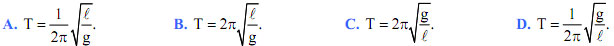 Câu 4: Một con lắc đơn có dây dài ℓ, dao động tại vị trí có gia tốc trọng trường g. Chu kì dao động nhỏ [sinα0 ≈ α0 (rad)] của con lắc này được tính theo biểu thức: