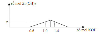 Câu 10: Khi nhỏ từ từ đến dư dung dịch KOH vào dung dịch hỗn hợp gồm x mol HCl và y mol ZnCl2, kết quả của thí nghiệm được biểu diễn trên đồ thị sau: