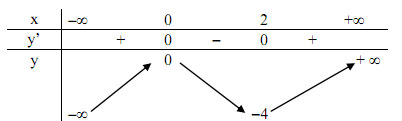 Hàm số đạt cực tiểu tại x = 2, giá trị cực tiểu: y(2)= -4.