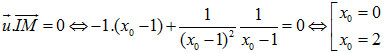Với x0 ≠ 1 tiếp tuyến (d) với (C) tại M(x0; x0/(x0 - 1)) có phương trình: