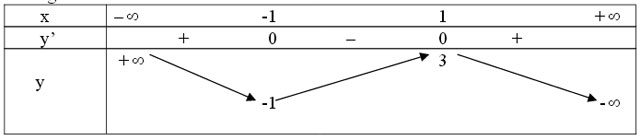 Hàm số đạt cực đại tại x = 1, yCD = 3, đạt cực tiểu tại x = -1, yCT = -1.
