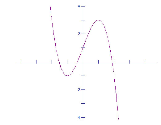 y' = -3x2 + 3; y' = 0 ↔ x = ±1