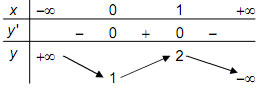 Hàm số đạt cực đại tại x = 1, yCD = 2.