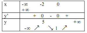 Cực trị: Hàm số đạt cực đại tại x = -2; yCĐ = 5, đạt cực tiểu tại x = 0; yCT = 1.