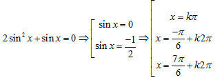 Vậy PT có 3 họ nghiệm là x = kπ, x = -π/6 + k2π, x = 7π/6 + k2π.