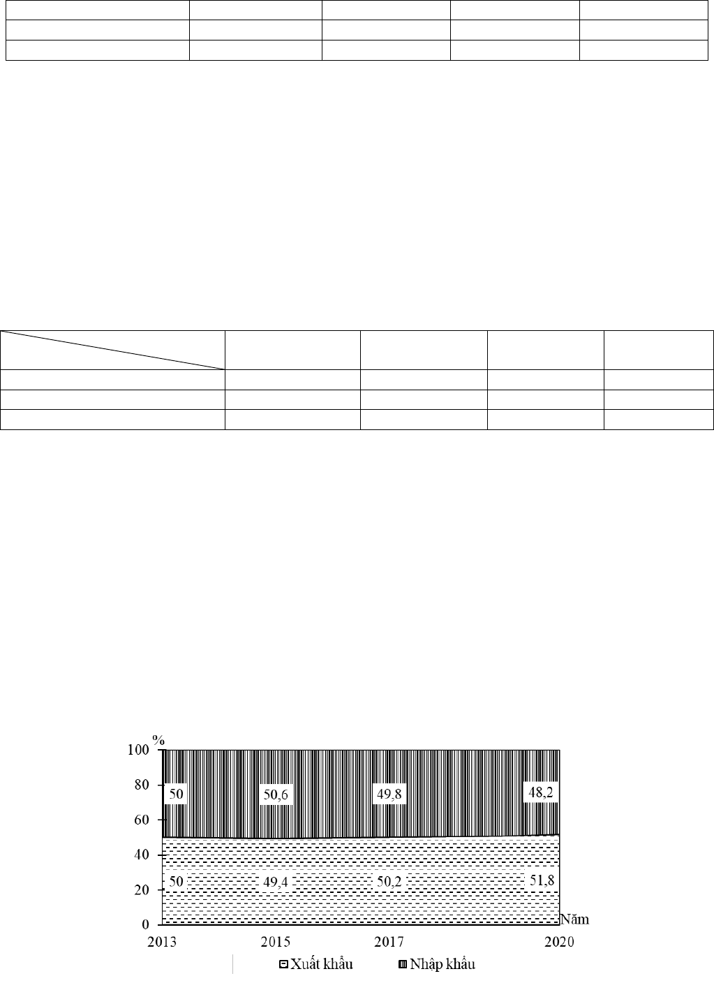 Câu 74. Cho biểu đồ về giá trị xuất nhập khẩu của nước ta, giai đoạn 2013 - 2020: