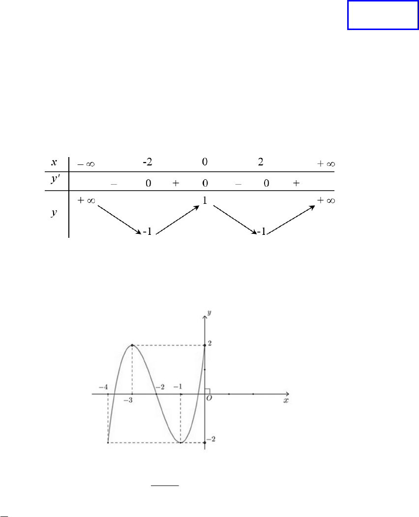 Câu 7. Đồ thị hình bên là đồ thị hàm số nào trong các hàm số sau đây: