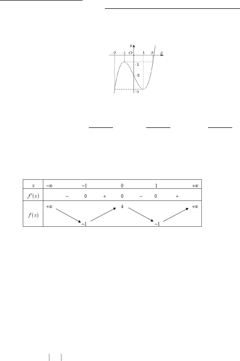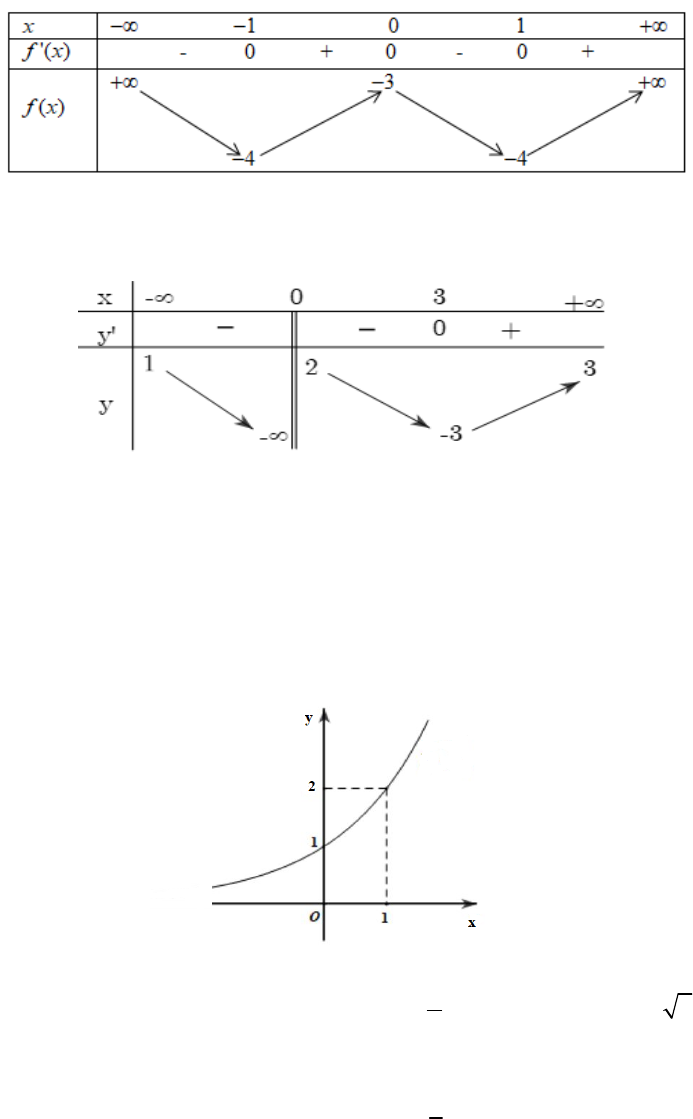 Câu 4: Cho hàm số có bảng biến thiên như sau: