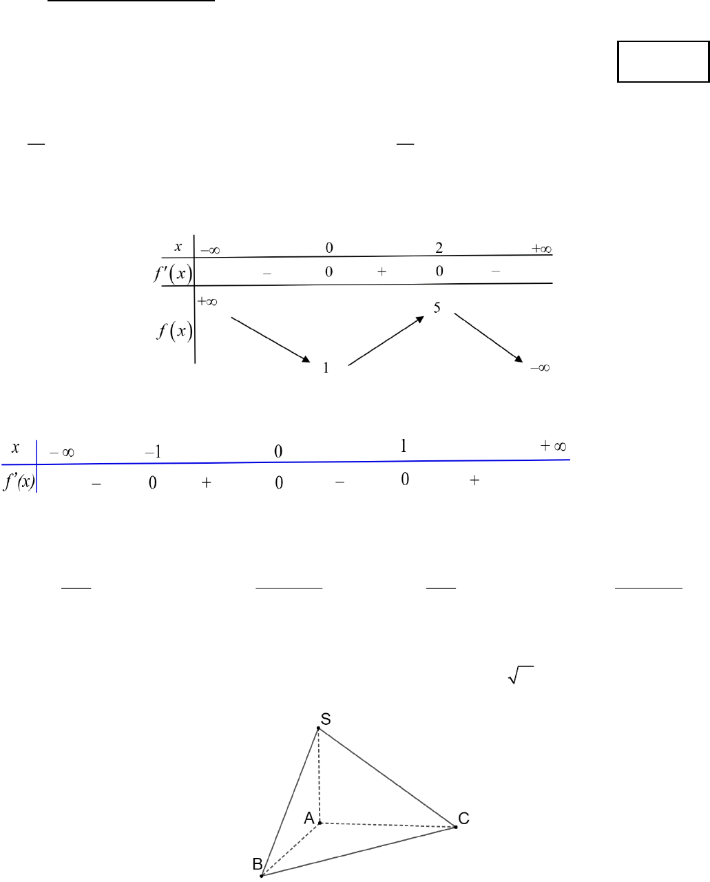 có bảng biến thiên như sau
