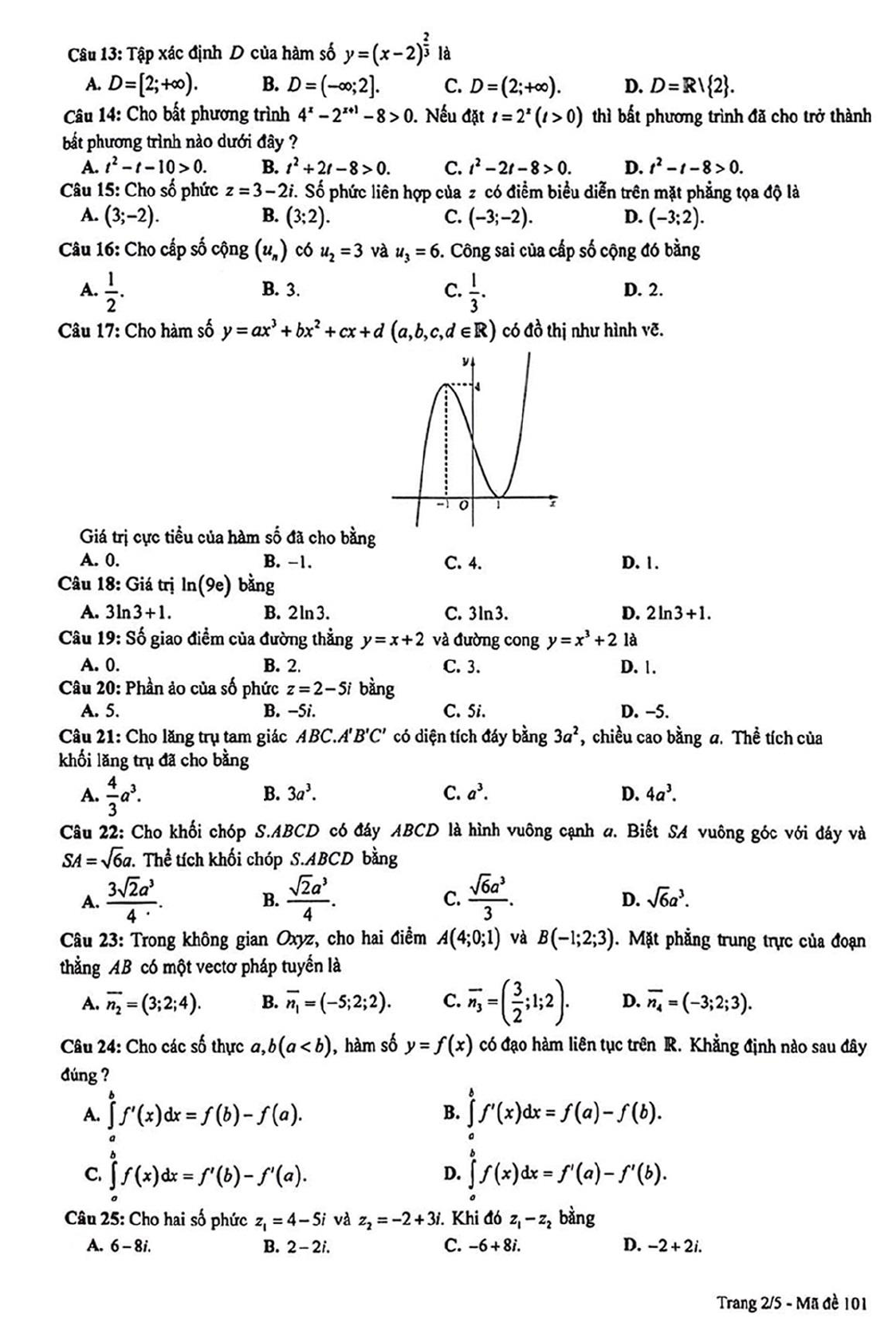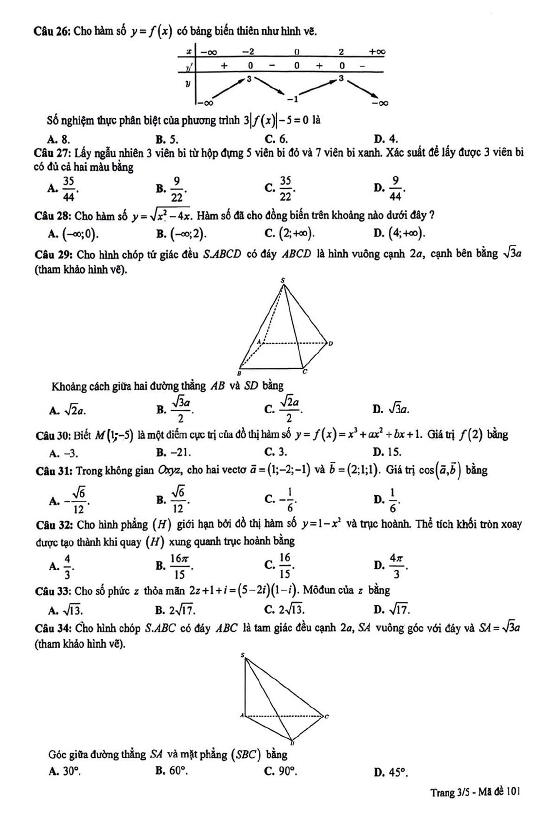 Đề thi được biên soạn giống với đề thi THPT Quốc gia các năm về trước. Đề thi được tổng hợp gồm có 50 câu hỏi trắc nghiệm, thí sinh làm bài trong thời gian 90 phút. Hi vọng qua bài viết này bạn đọc có thêm tài liệu để học tập tốt hơn môn Toán lớp 12. Mời các bạn cùng tham khảo thêm tại mục Thi THPT Quốc gia môn Toán.