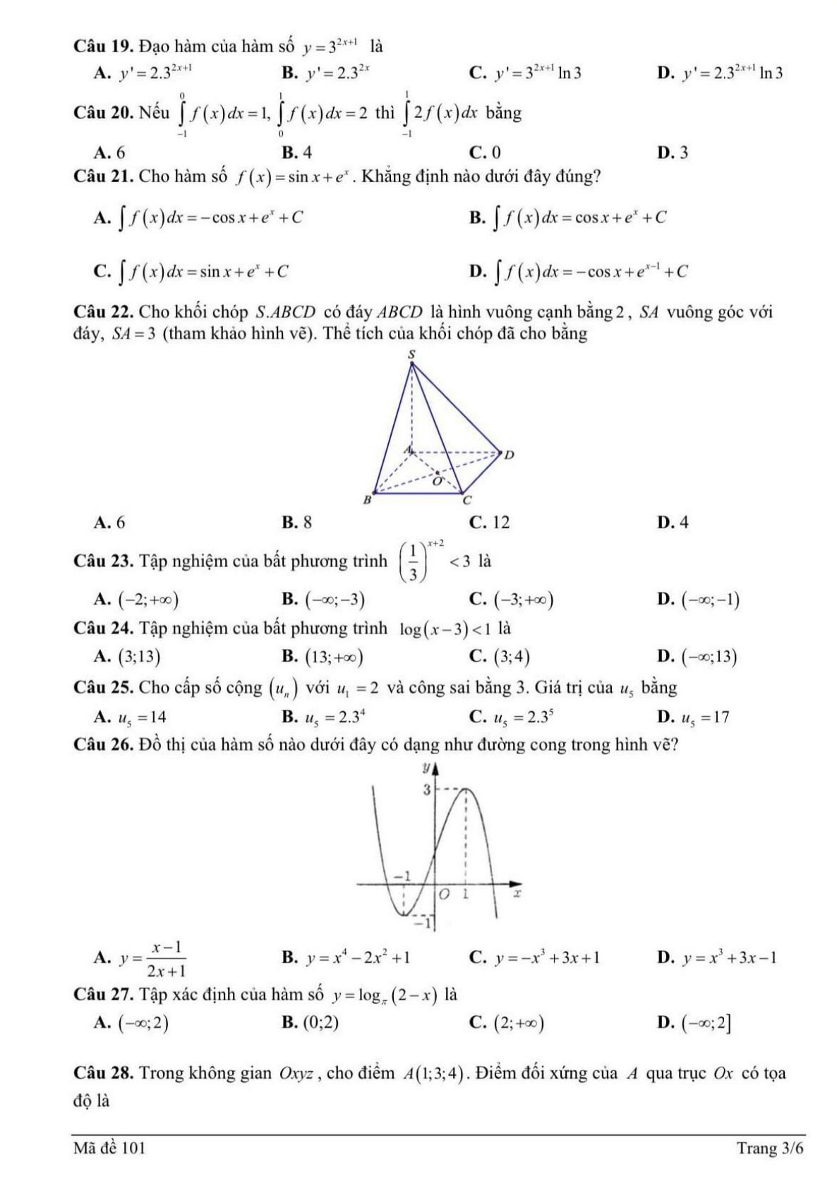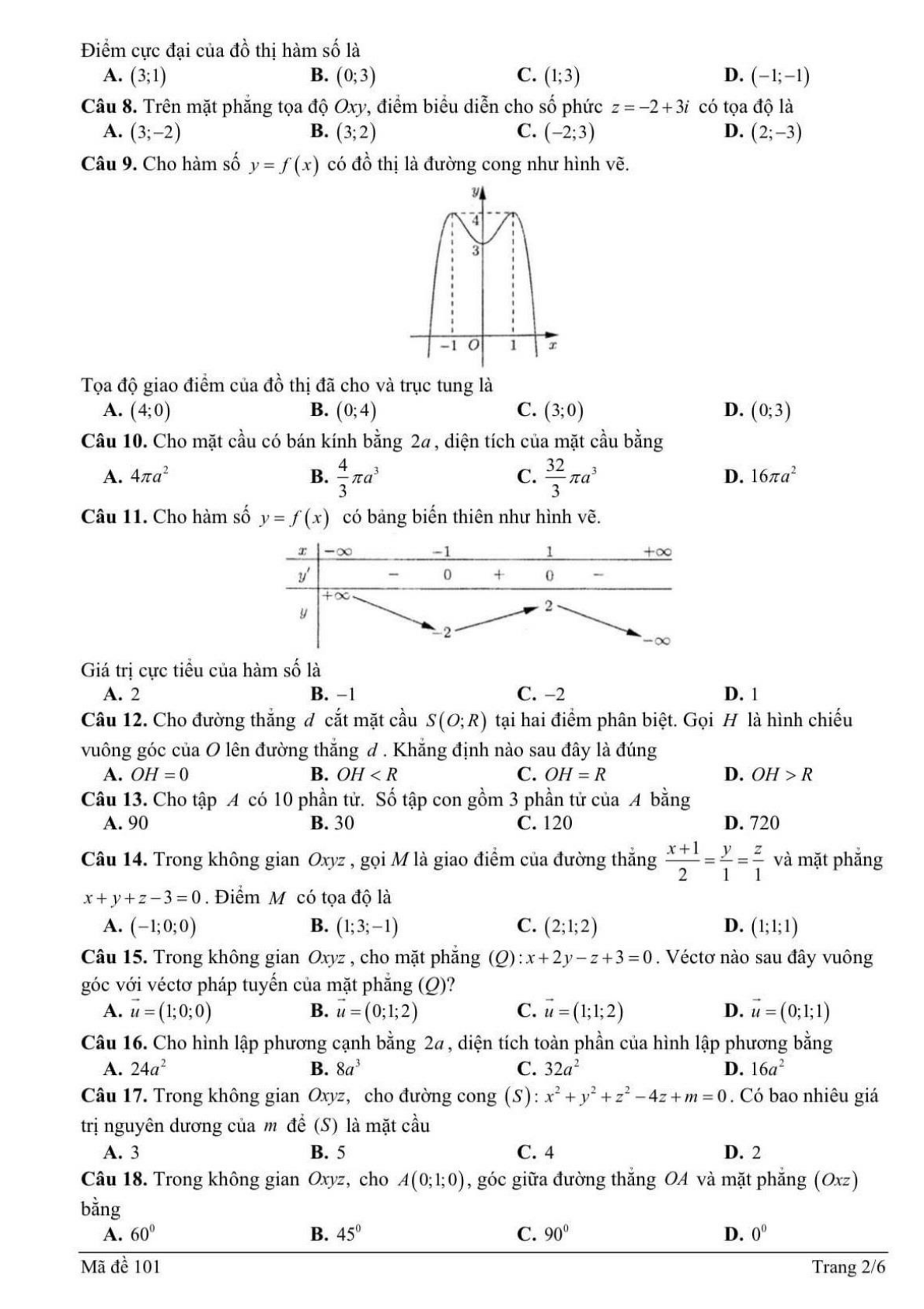 Đề thi được tổng hợp gồm có 50 câu hỏi trắc nghiệm, thí sinh làm bài trong thời gian 90 phút. Hi vọng qua bài viết này bạn đọc có thêm tài liệu để học tập tốt hơn môn Toán lớp 12 nhé. Mời các bạn cùng tham khảo thêm tại mục Thi THPT Quốc gia môn Toán.