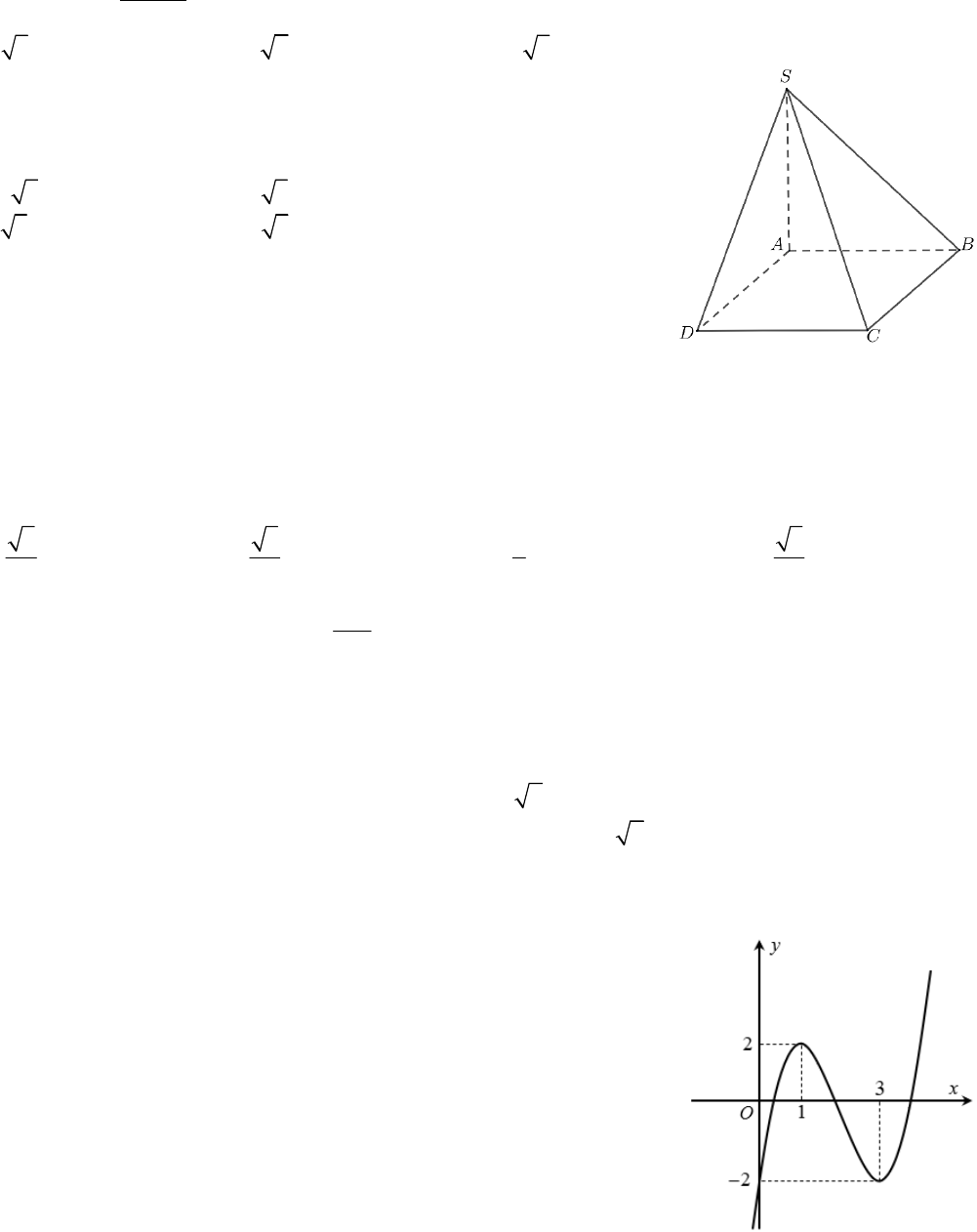 Câu 28. Cho hàm số bậc ba có đồ thị là đường cong trong hình vẽ bên.