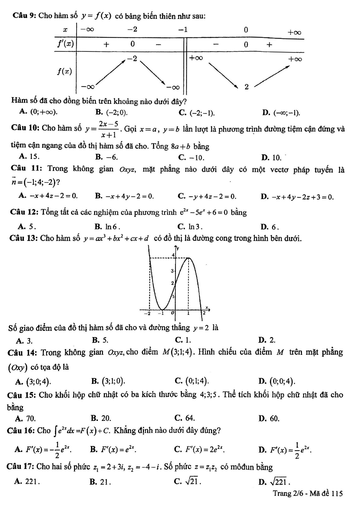 Đề thi được tổng hợp gồm có 50 câu hỏi trắc nghiệm có đáp án và lời giải chi tiết kèm theo. Thí sinh làm bài trong thời gian 90 phút. Hi vọng qua đây bạn đọc có thêm tài liệu để học tập tốt hơn môn Toán lớp 12. Mời các bạn cùng theo dõi thêm tại mục Thi THPT Quốc gia môn Toán.