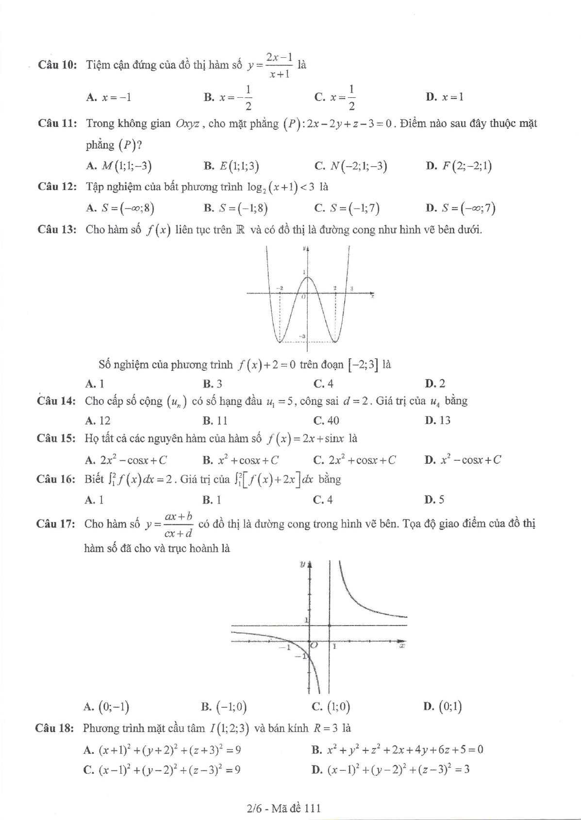 Đáp án đề thi thử tốt nghiệp môn Toán Sở Lào Cai