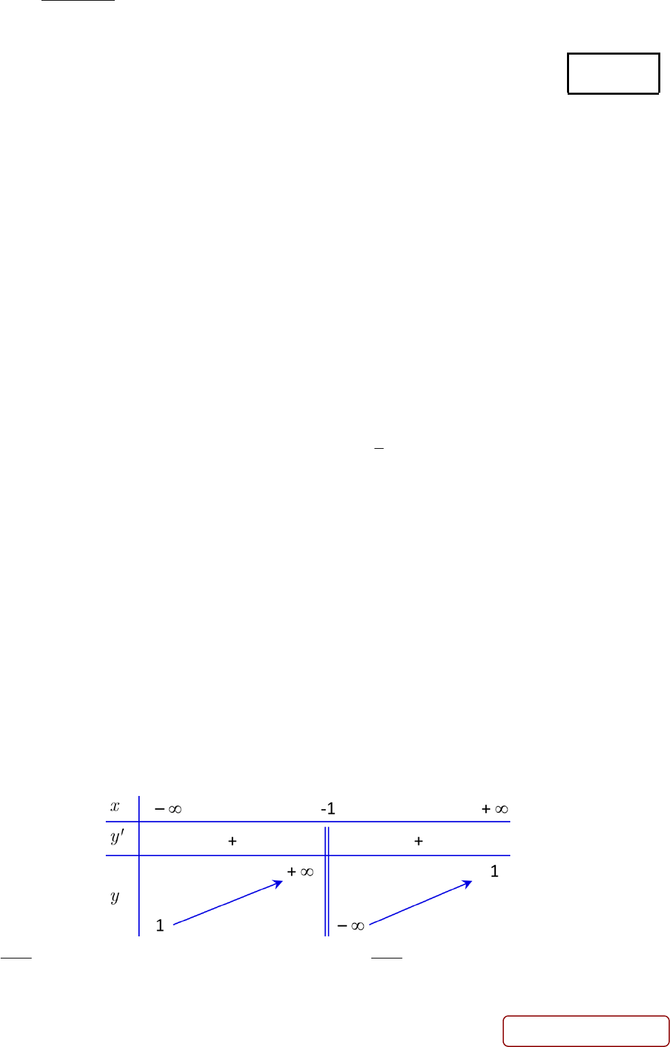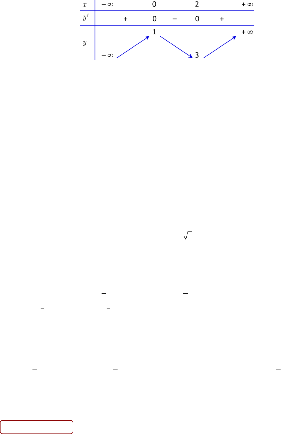 Câu 10. Hàm số nào dưới đây có bảng biến thiên như sau?