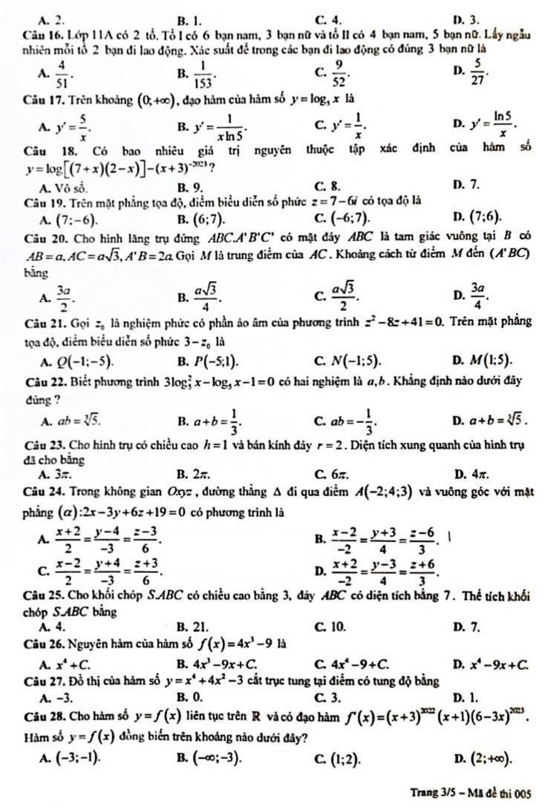 Đề thi thử THPT Quốc gia năm 2023 môn Toán Sở GD&ĐT Tuyên Quang