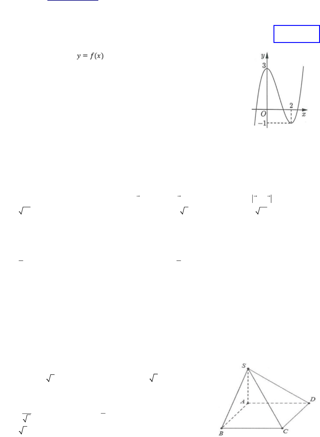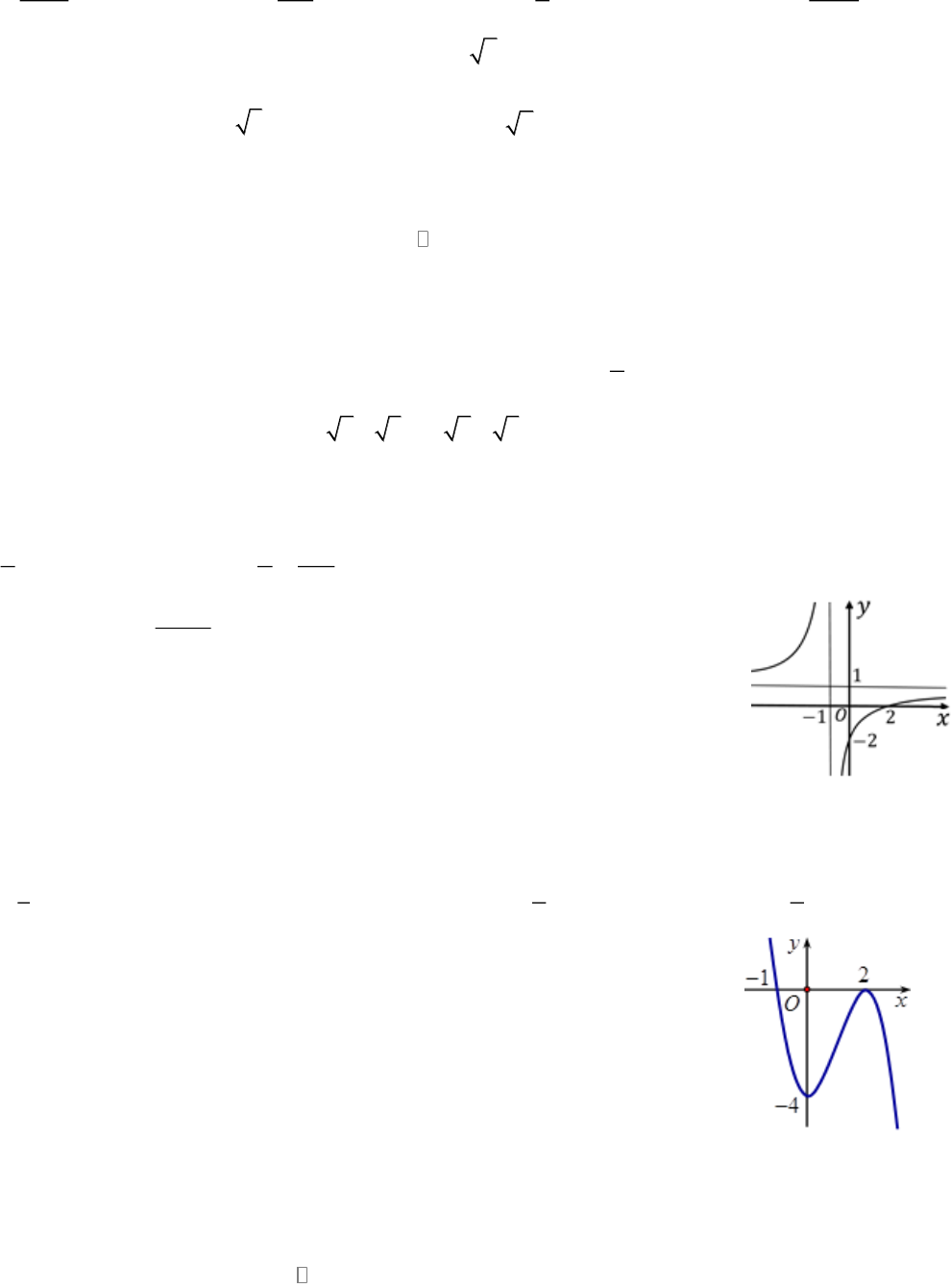 Câu 1. Cho hàm số bậc ba có đồ thị là đường cong trong hình bên.