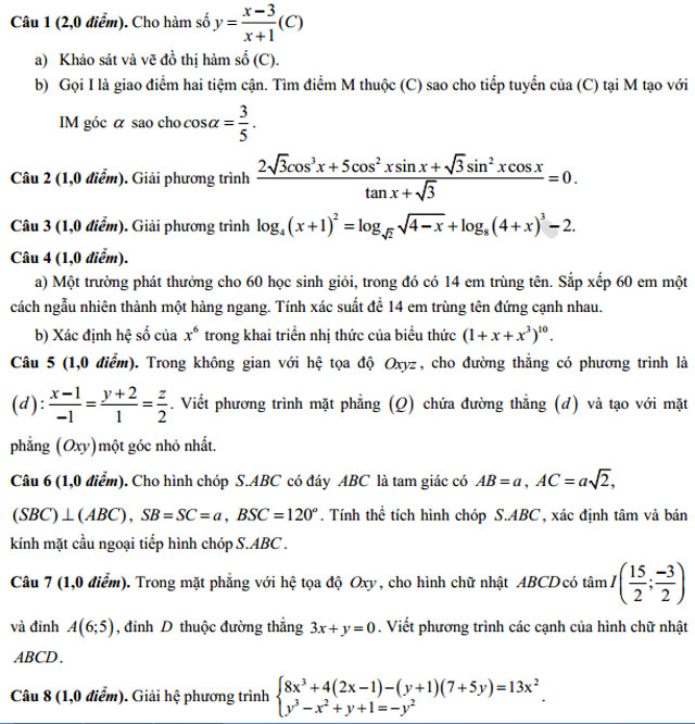Tài liệu ôn luyện thi đại học môn Toán có đáp án