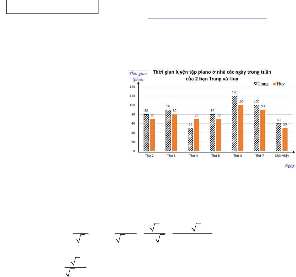 Thời gian luyện tập Piano của bạn Trang nhiều hơn thời gian luyện tập Piano của