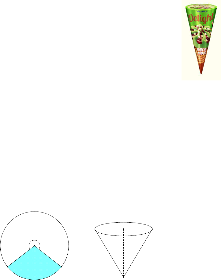 1) Một que kem ốc quế có dạng hình nón với đường kính đáy là