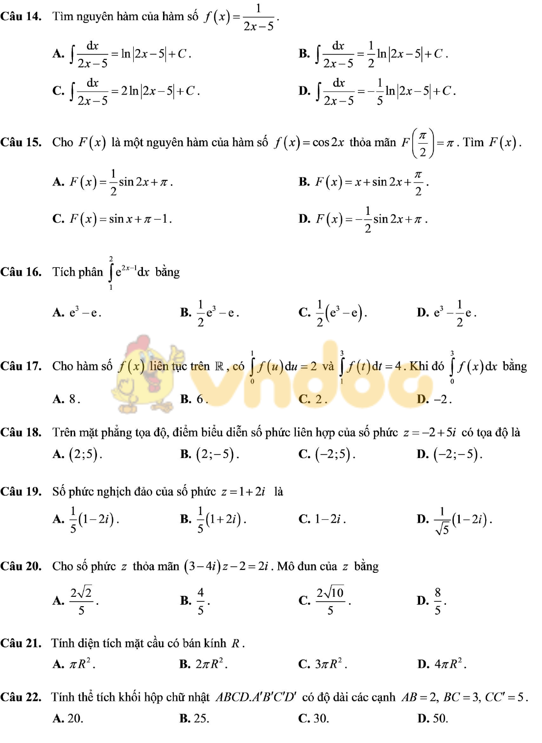 VnDoc gửi tới thầy cô và các em học sinh Đề thi thử THPT Quốc gia 2021 môn Toán trường THPT chuyên Hà Tĩnh vừa diễn ra. Kỳ thi được diễn ra theo hình thức thi trực tuyến, với cấu trúc 50 câu hỏi trắc nghiệm Toán THPT, được biên soạn bám sát đề minh họa 2021 môn Toán của Bộ GD&ĐT, chắc chắn là tài liệu tham khảo hữu ích cho các em ôn thi THPT Quốc gia.