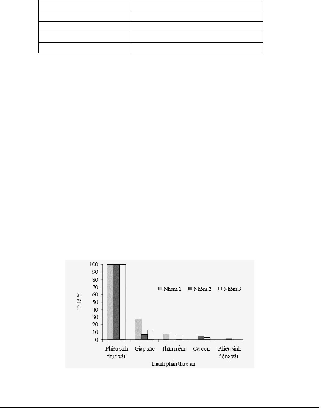 B. Nhóm phiêu sinh thực vật là loại thức ăn có tần suất xuất hiện đạt 100% trên tổng số mẫu phân tích.