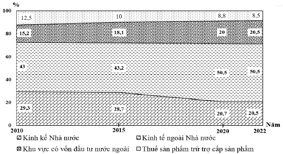 Biểu đồ cơ cấu GDP phân theo thành phần kinh tế ở nước ta giai đoạn 2010 – 2022
