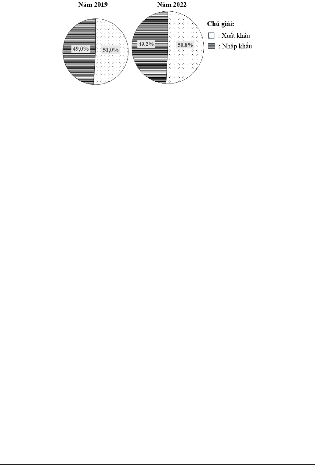 Biểu đồ cơ cấu xuất nhập khẩu của nước ta năm 2019 và năm 2022
