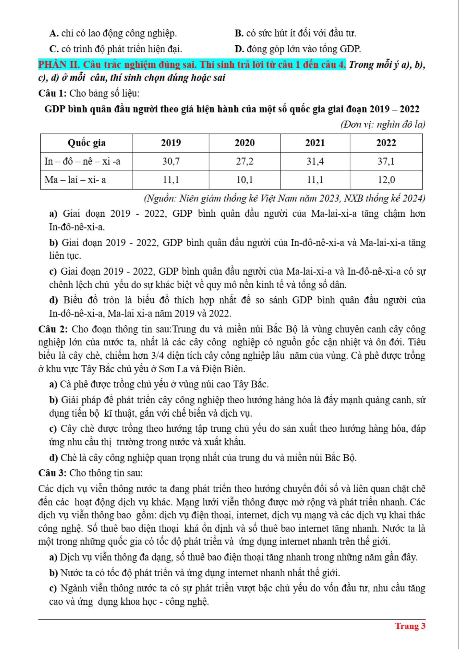 VnDoc.com xin gửi tới bạn đọc bài viết Đề thi thử tốt nghiệp THPT Quốc gia 2025 môn Địa lí khối THPT Cẩm Xuyên, Hà Tĩnh có đáp án để bạn đọc cùng tham khảo. Đề thi được biên soạn theo cấu trúc đề thi mới. Đề thi gồm có 18 câu hỏi trắc nghiệm, 4 câu hỏi đúng sai và 6 câu hỏi trả lời ngắn. Thí sinh làm bài trong thời gian 50 phút. Mời các bạn cùng theo dõi đề thi dưới đây để có thêm tài liệu ôn thi kì Thi THPT Quốc gia sắp tới nhé.