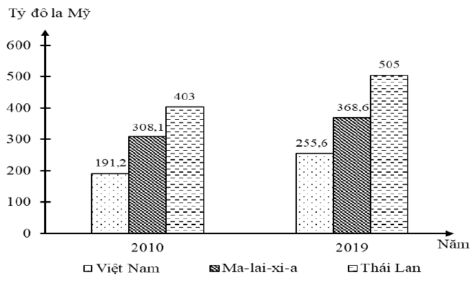 b) Việt Nam tăng nhiều nhất, Ma-lai-xi-a tăng ít nhất trong giai đoạn 2010 -2019.
