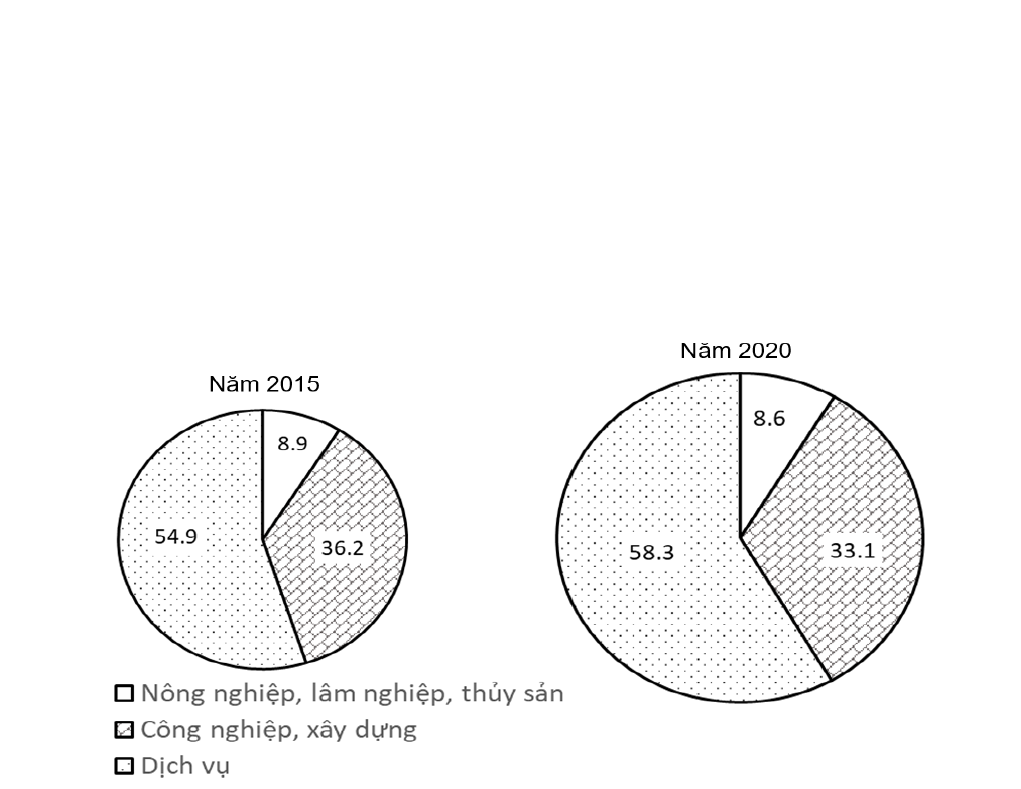 Biểu đồ thể hiện quy mô và cơ cấu GDP của Thái Lan năm 2015 và năm 2020 (đơn vị: %)