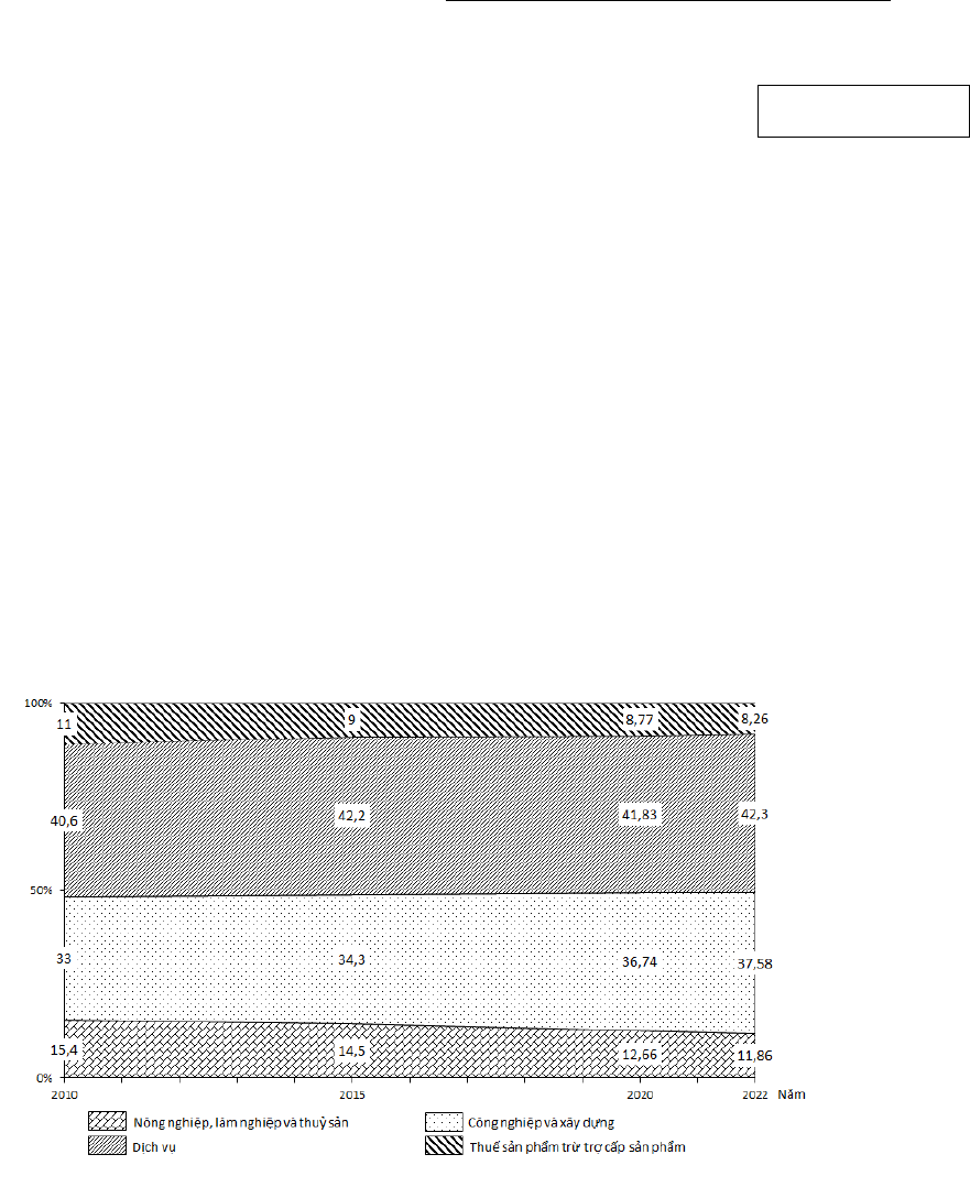 Biểu đồ cơ cấu GDP phân theo ngành kinh tế ở nước ta giai đoạn 2010 – 2022