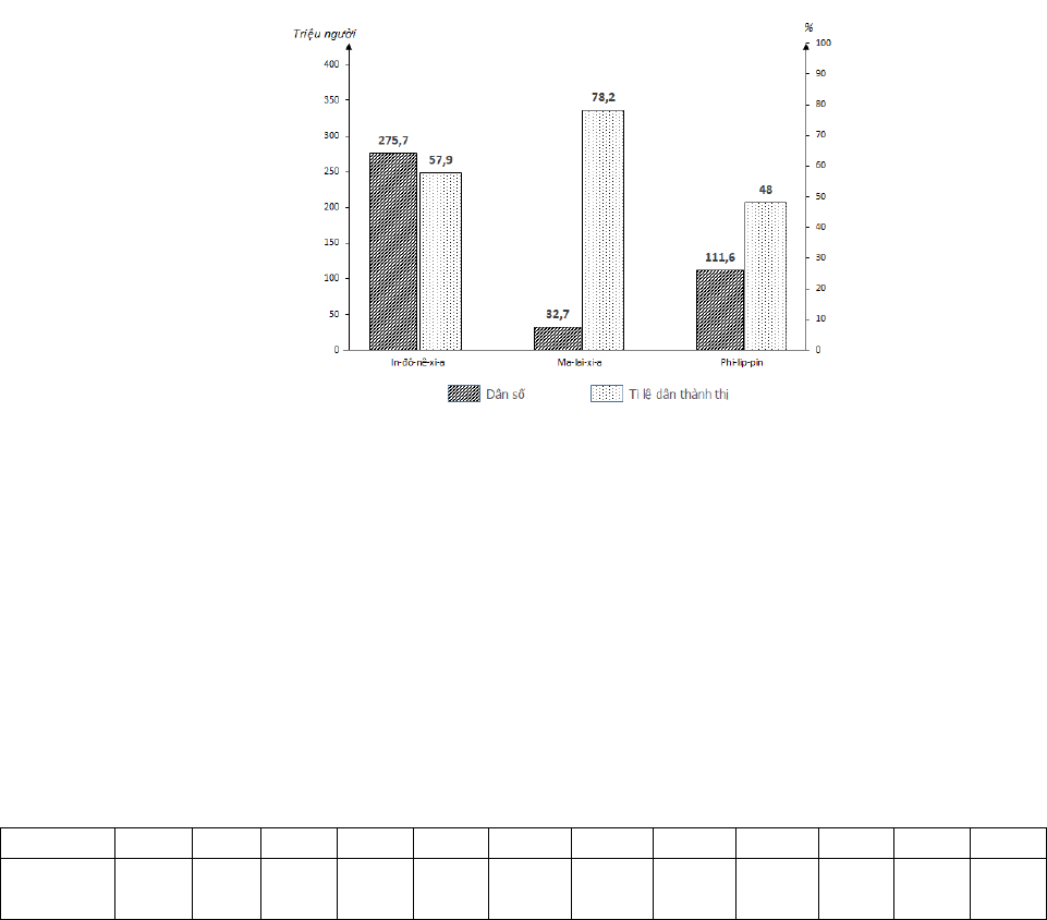 c) In-đô-nê-xi-a có số dân thành thị cao nhất.