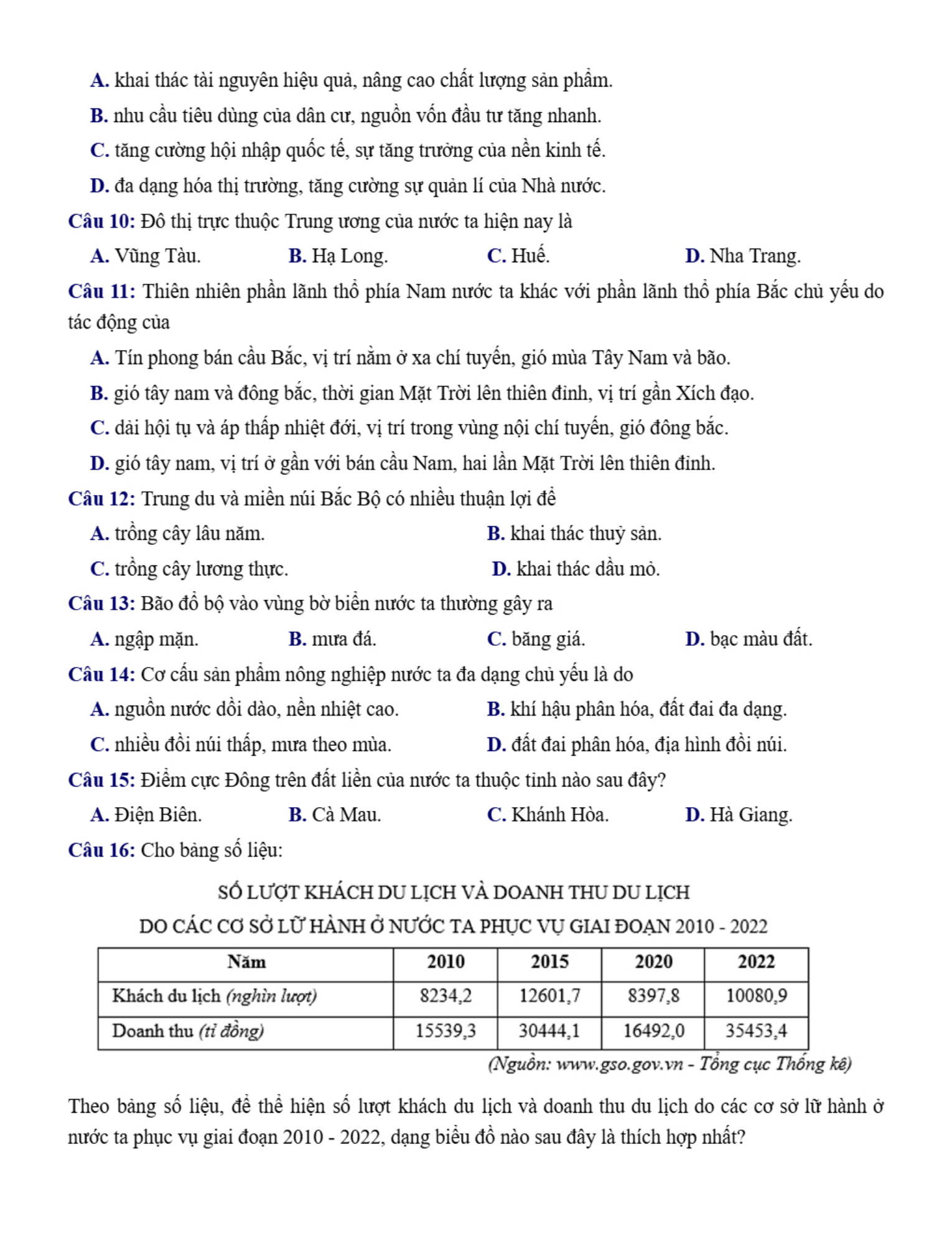 Đề thi thử tốt nghiệp môn Địa Sở Hòa Bình