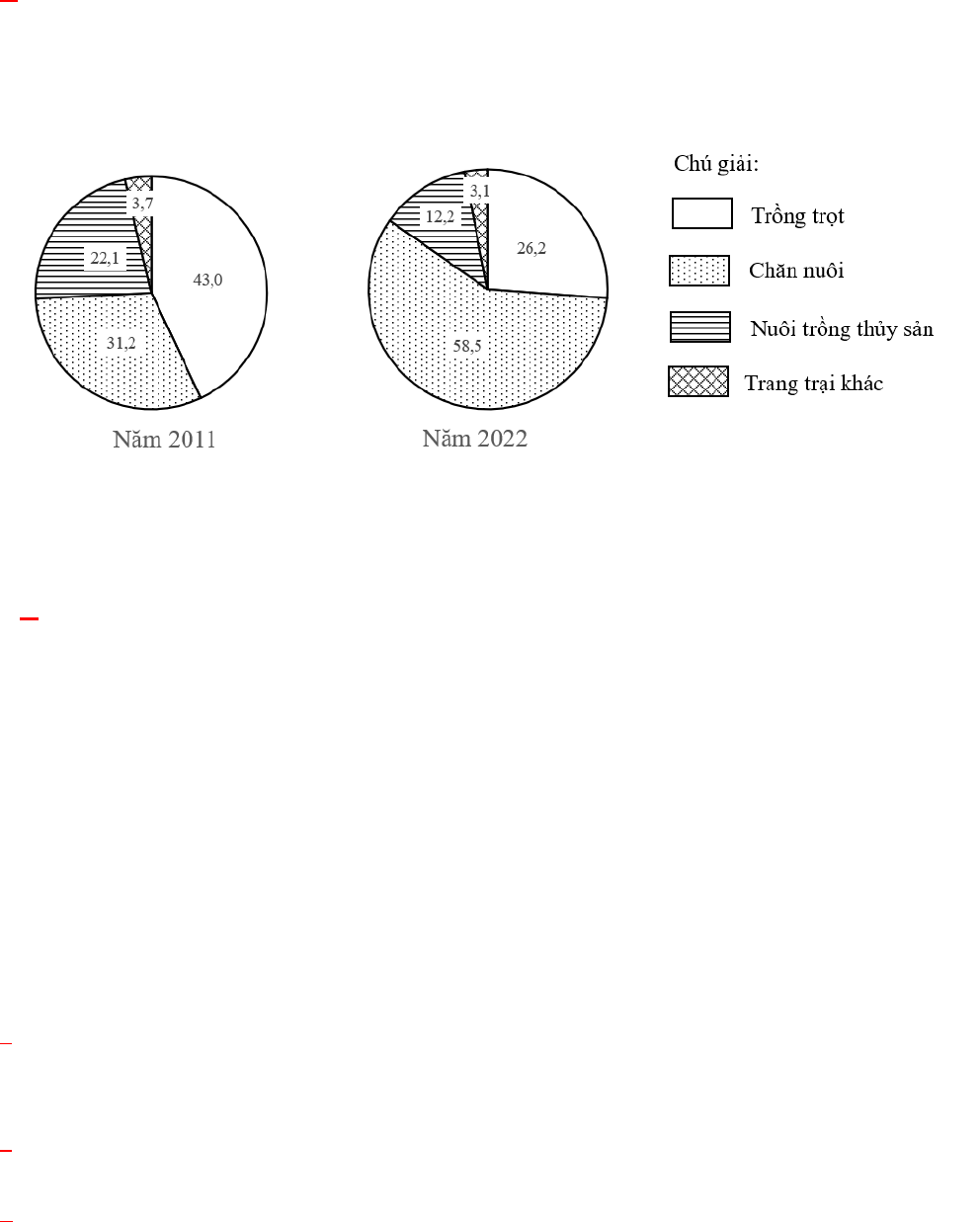 Cơ cấu trang trại phân theo lĩnh vực hoạt động ở nước ta giai đoạn 2011 – 2022