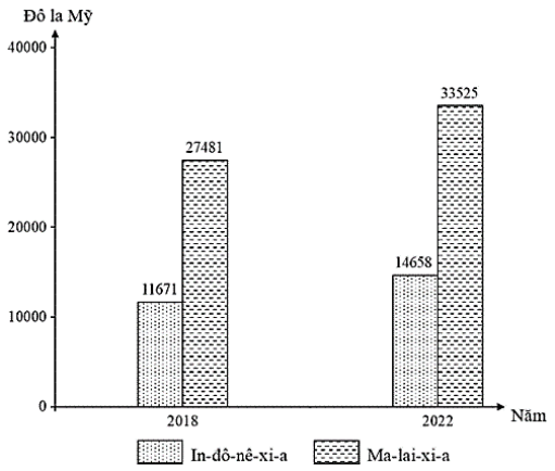 GDP/NGƯỜI CỦA IN-ĐÔ-NÊ-XI-A VÀ MA-LAI-XI-A NĂM 2018 VÀ NĂM 2022
