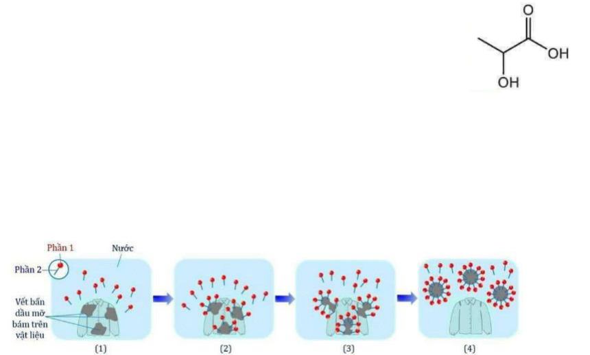 Câu 3. Cho sơ đồ mô tả cơ chế giặt rửa của xà phòng như sau: