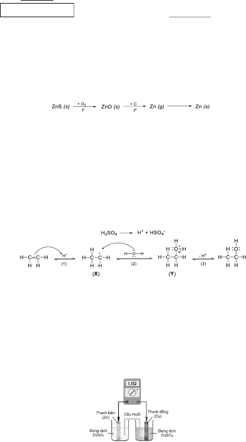 Câu 2. Trong công nghiệp, kim loại kẽm được tách từ quặng sphalerite (thành phần chính là ZnS) theo sơ đồ sau: