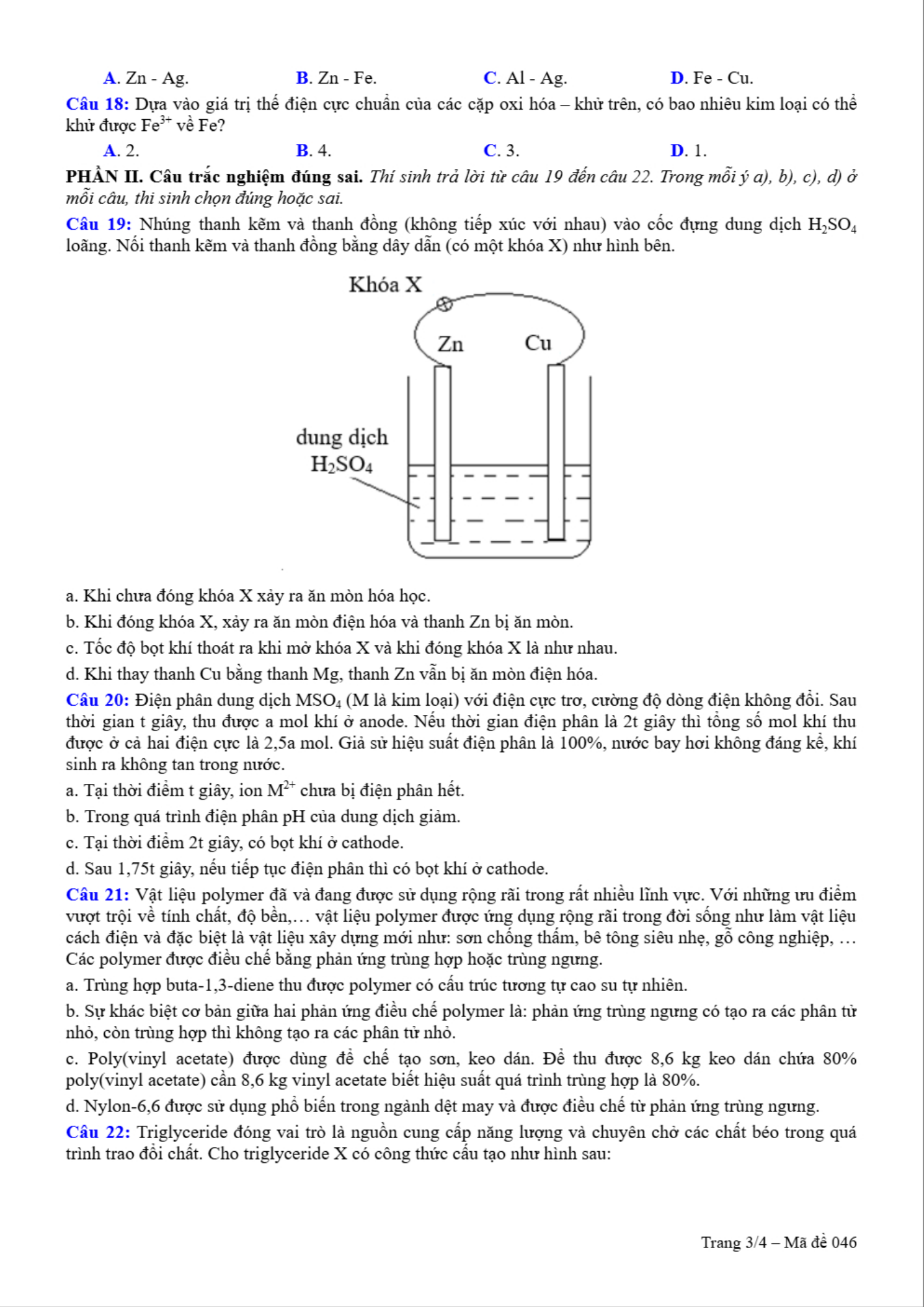 VnDoc.com xin gửi tới bạn đọc bài viết Đề thi thử tốt nghiệp THPT Quốc gia 2025 môn Hóa lần 1 trường THPT Chuyên Đại học Vinh có đáp án để bạn đọc cùng tham khảo. Đề thi được biên soạn theo cấu trúc đề thi mới. Đề thi gồm có 18 câu hỏi trắc nghiệm nhiều phương án lựa chọn, 4 câu hỏi trắc nghiệm đúng sai và 6 câu hỏi trắc nghiệm trả lời ngắn. Thí sinh làm bài trong thời gian 50 phút. Đề có đáp án và lời giải chi tiết kèm theo. Mời các bạn cùng theo dõi đề thi dưới đây để có thêm tài liệu ôn thi kì Thi THPT Quốc gia sắp tới nhé.