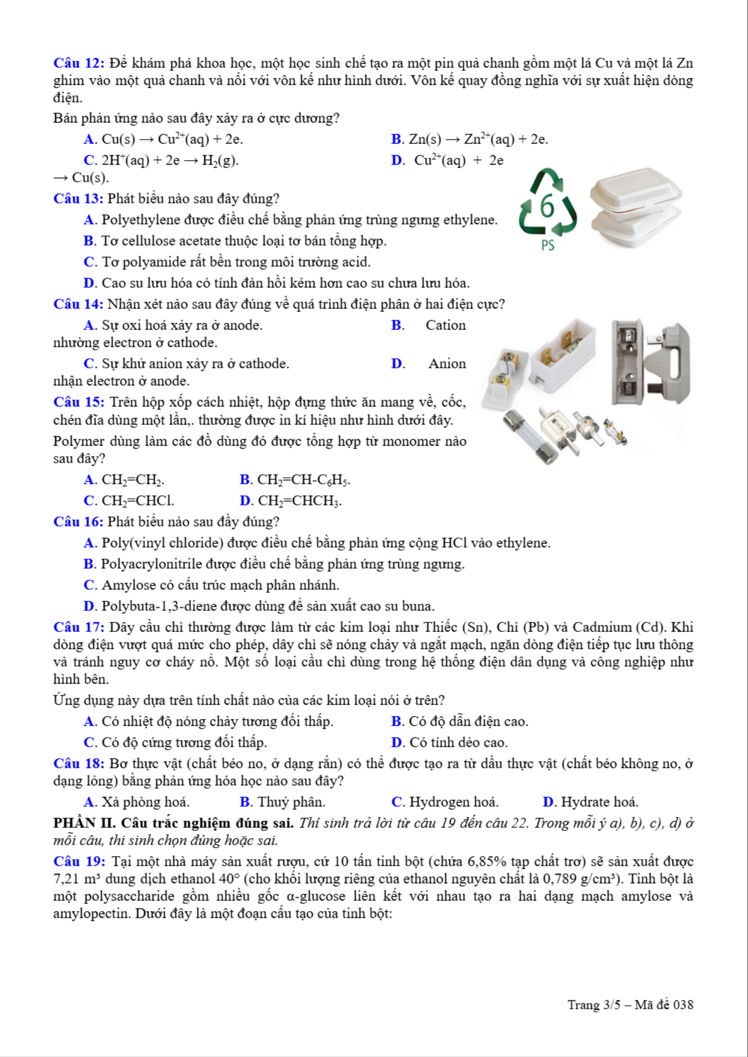 VnDoc.com xin gửi tới bạn đọc bài viết Đề thi thử tốt nghiệp THPT Quốc gia 2025 môn Hóa Sở GD&ĐT Thanh Hóa có đáp án để bạn đọc cùng tham khảo. Đề thi được biên soạn theo cấu trúc đề thi mới. Đề thi gồm có 18 câu hỏi trắc nghiệm nhiều phương án lựa chọn, 4 câu hỏi trắc nghiệm đúng sai và 6 câu hỏi trắc nghiệm trả lời ngắn. Thí sinh làm bài trong thời gian 50 phút. Đề có đáp án và lời giải chi tiết kèm theo. Mời các bạn cùng theo dõi đề thi dưới đây để có thêm tài liệu ôn thi kì Thi THPT Quốc gia sắp tới nhé.