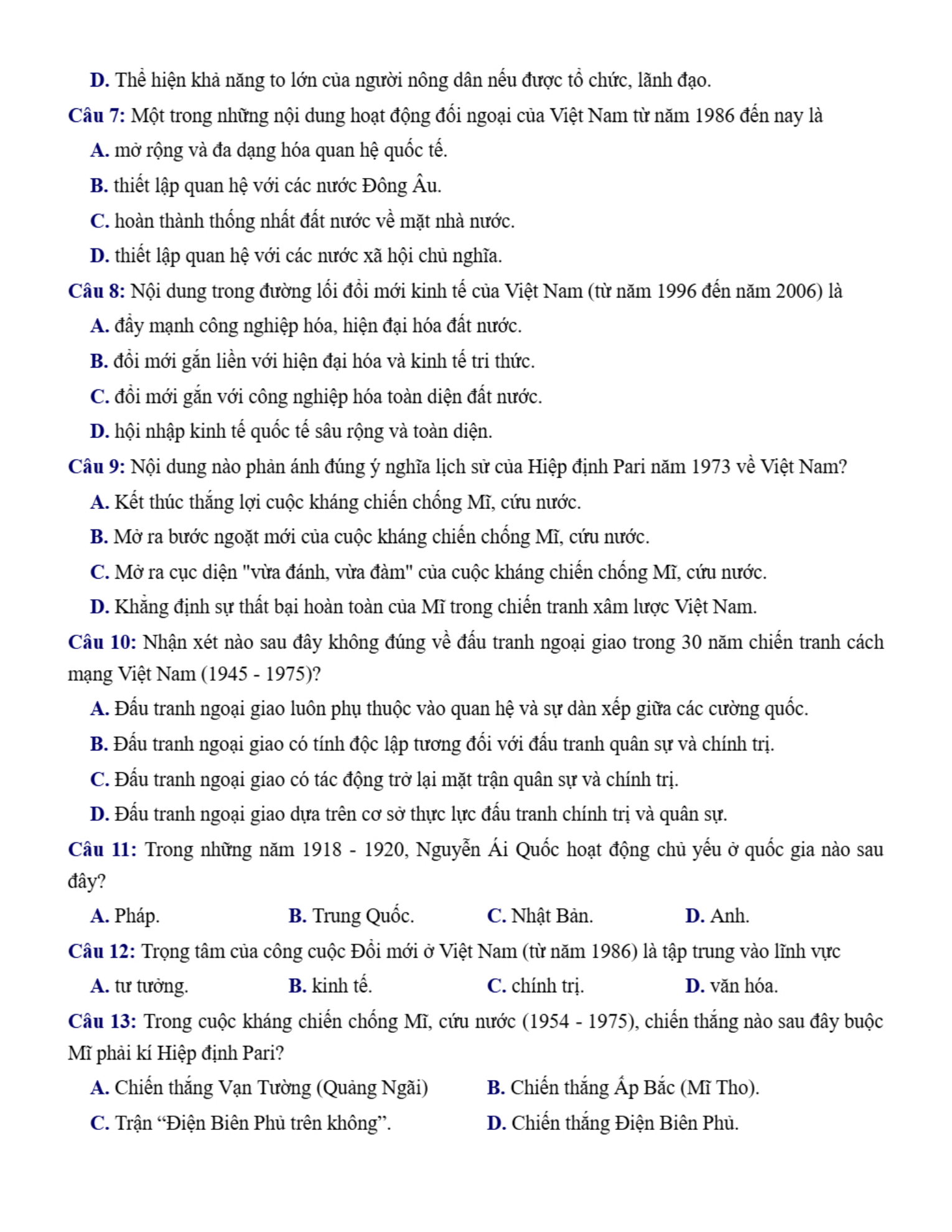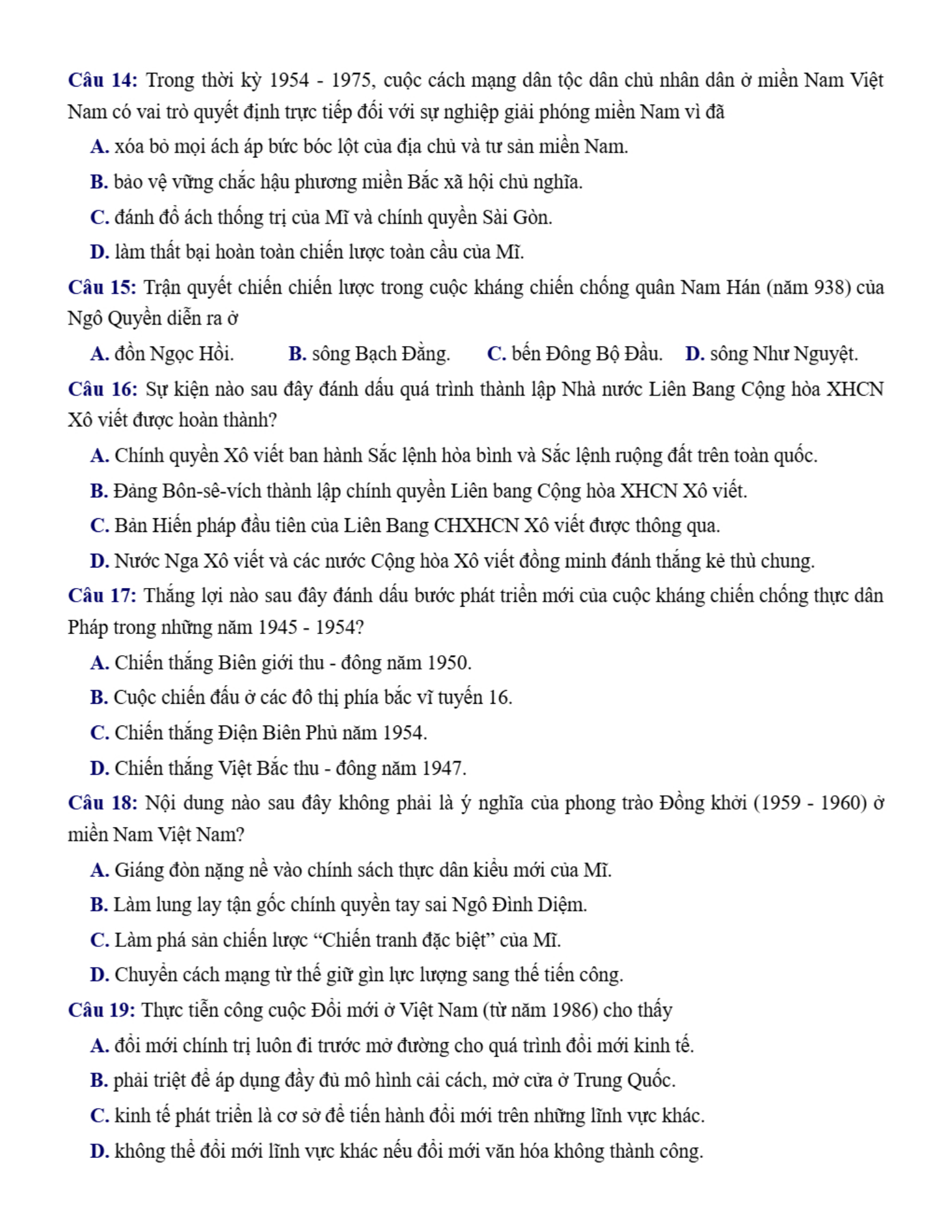 Đề thi thử tốt nghiệp môn Sử Sở Tuyên Quang