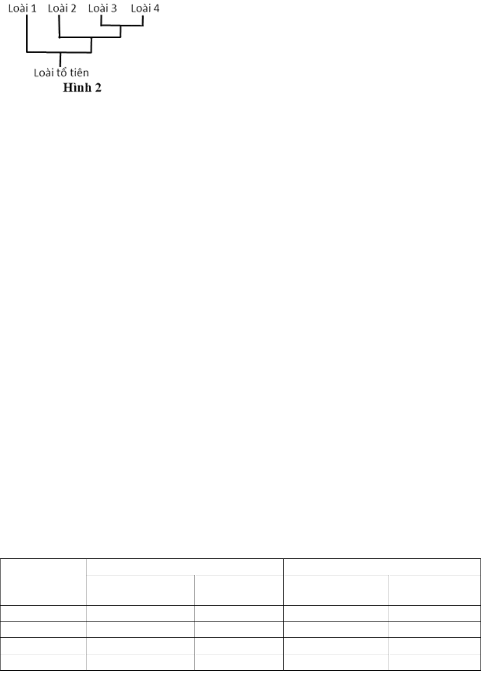 Câu 13. Hình 2 thể hiện sự phát sinh của bốn loài thuộc các chi khác nhau.